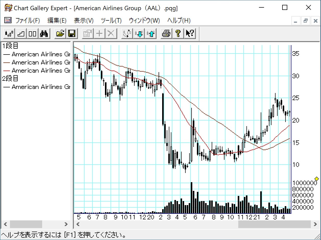 グラフは、かたや米国の大手空運会社・アメリカン航空、方や日本のJALの2年足です。両銘柄とも、新コロ暴落後の2020年5月から6月の安値を起点にすると、5月7日現在の株価上昇率はアメリカン航空が266%である一方、JALは71%にとどまっており、JALの出遅れ感が顕著です。