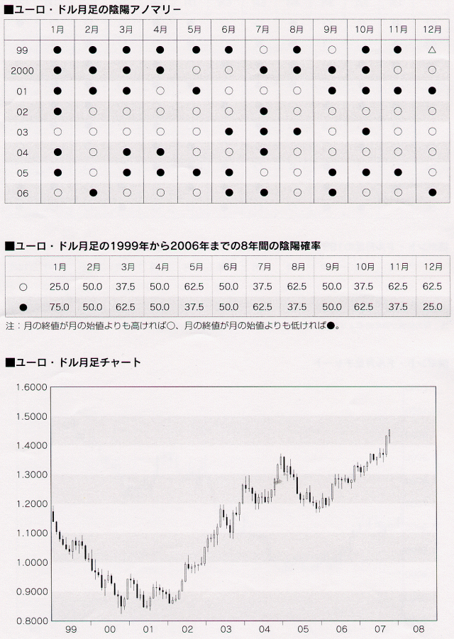 そんな時は月別陰陽確率を見てみましょう。ドル・円は8月に陰線出現確率が高いなど、思わぬ発見があるかも。