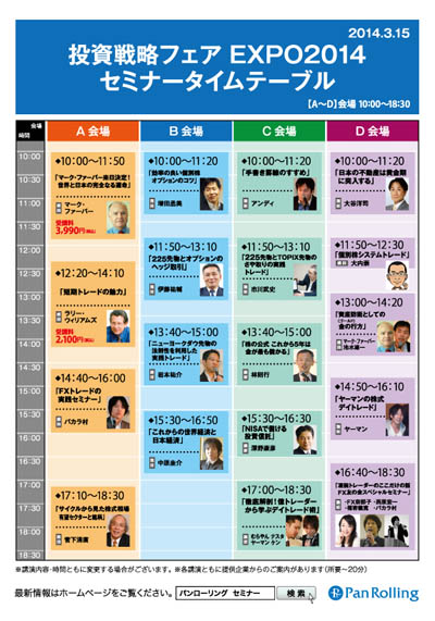 各講演のお申し込みや投資戦略フェア エキスポ2014の詳細は