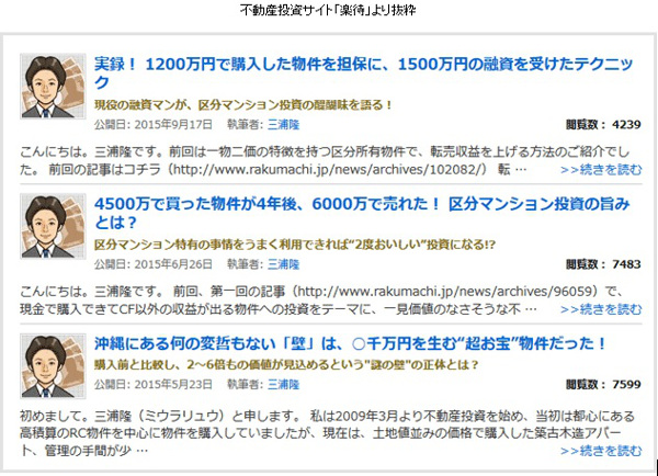 三浦氏は不動産投資を始めた当初は木造アパート4棟への投資でしたが、それから色々と試行錯誤を繰り返し、時には新規融資が完全にストップした時期もありましたが、数年かけて銀行との付き合い方や物件管理の仕方などの攻略方法を構築してきました。 そして、年々物件は増えていき、 現在は総投資額が25億円にも及び、40物件、総戸数約545戸保有しています。これだけあれば相当な家賃収入もありますし、仮に全ての物件を売却したとしても数億円のリターンになります。この成功によって、メディアからも声をかけられるようになり、不動産投資家の人気サイトである「楽待」にコラムを出稿しています。