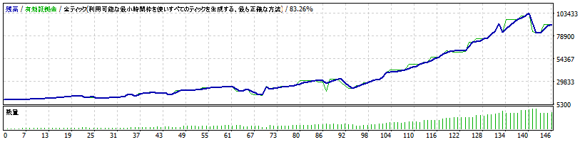 | 総取引数 | 146 | 売りポジション (勝率%) | 80 (81.25%) | 買いポジション (勝率%) | 66 (86.36%) |
