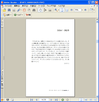Adobe eBOOK 形式の本を読むには、専用の閲覧ソフト「Adobe Reader(最新版)」(無料)が必要です。Adobe Reader画面例以下、Adobe Readerの入手方法・事前準備と操作方法についてご説明します。