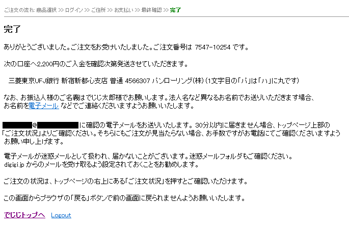 ご注文の完了